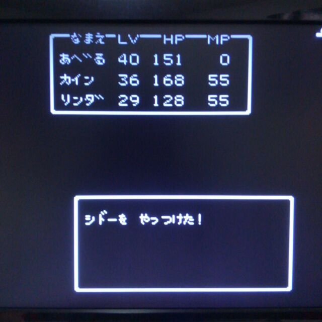 予想通り、レベルを上げすぎたようです。まあ元々サマルの力の上昇率が一番高い~36になったら腹くくるかって思ってたしの。羽衣2着使ってこのレベルで倒せないわきゃねーわな。