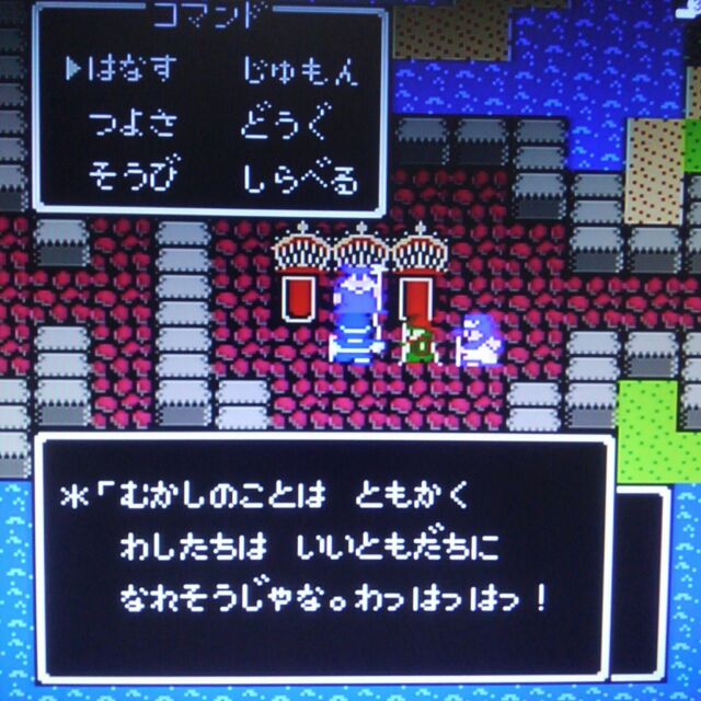 竜王のひ孫があだ名で呼び合おうと提案してくるのはSFC版からです。FC版は仲間の二人含め、アッサリ気味のテキストが多いです。