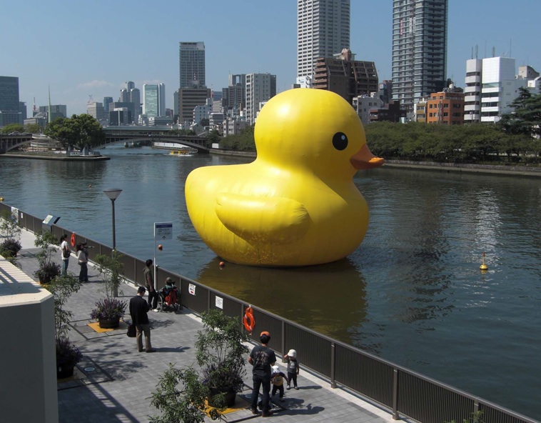 このシーン、友人に「大阪の川だか海だかにでかいアヒルが浮かんだことあったよね、あれに似てる」と私が意味不明な説明をしたせいで賛同を得られなかったんですが、私が言いたかったのはコレですコレ↓