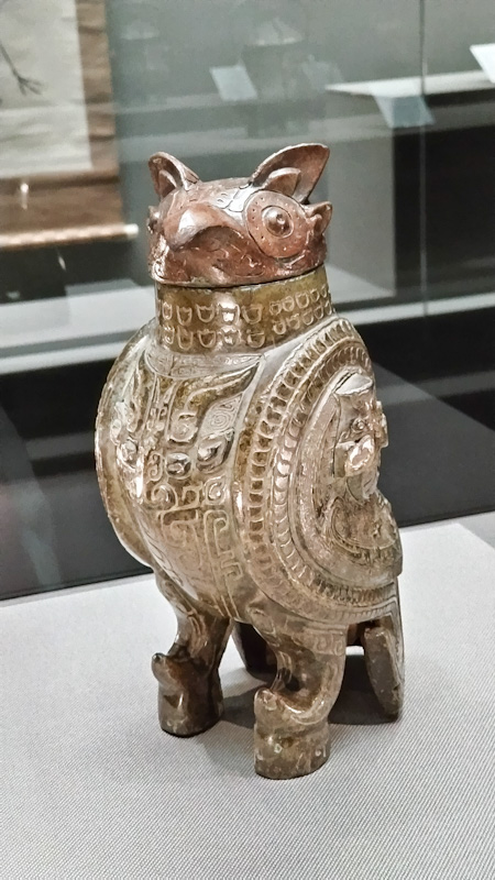 これだけしっかりした造形なのに、こやつ殷時代(殷後期)の代物なのよ。あと酒器なので首が回るらしい。