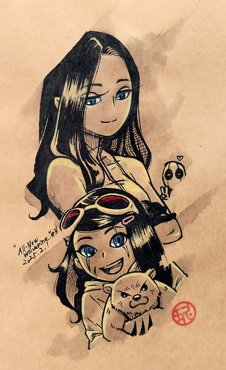 2015〜18年で展開されてた楽しいウルぴー一家シリーズなんだけど、メインキャラは2代目ウルヴァリンの名前襲名したローラ(ウルぴーのクローン)で、ローラのクローン(扱い的には妹)ギャビーちゃんとペットのクズリのジョナサン(喋る)、ウルぴーの実子ダケンくん、あとオールドマン・ローガン(面倒くせぇから以下老ーガン)、たまに共闘中?のセイバートゥース、デスストライク…?かな…?って構成かね。