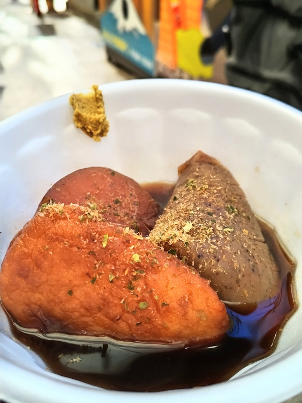 あと熱海駅の食べ歩きでホタテと静岡おでんも食べた。同僚が静岡出身で真っ黒出汁と黒はんぺんが主流で白はんぺんは上京して初めて見たって話してたので、興味で食べた。ちなみに黒はんぺんだけ売り切れだった。哀しみ。