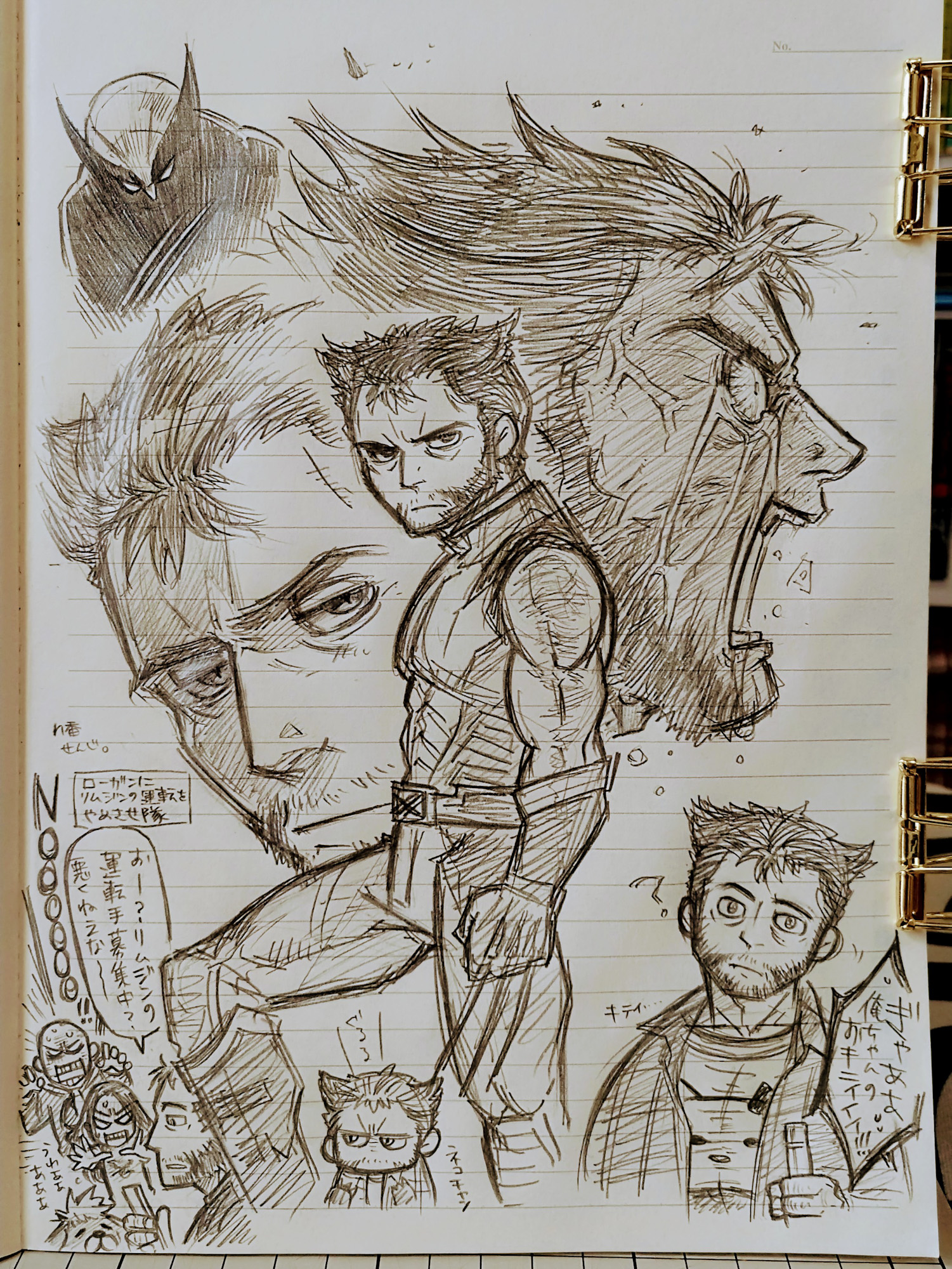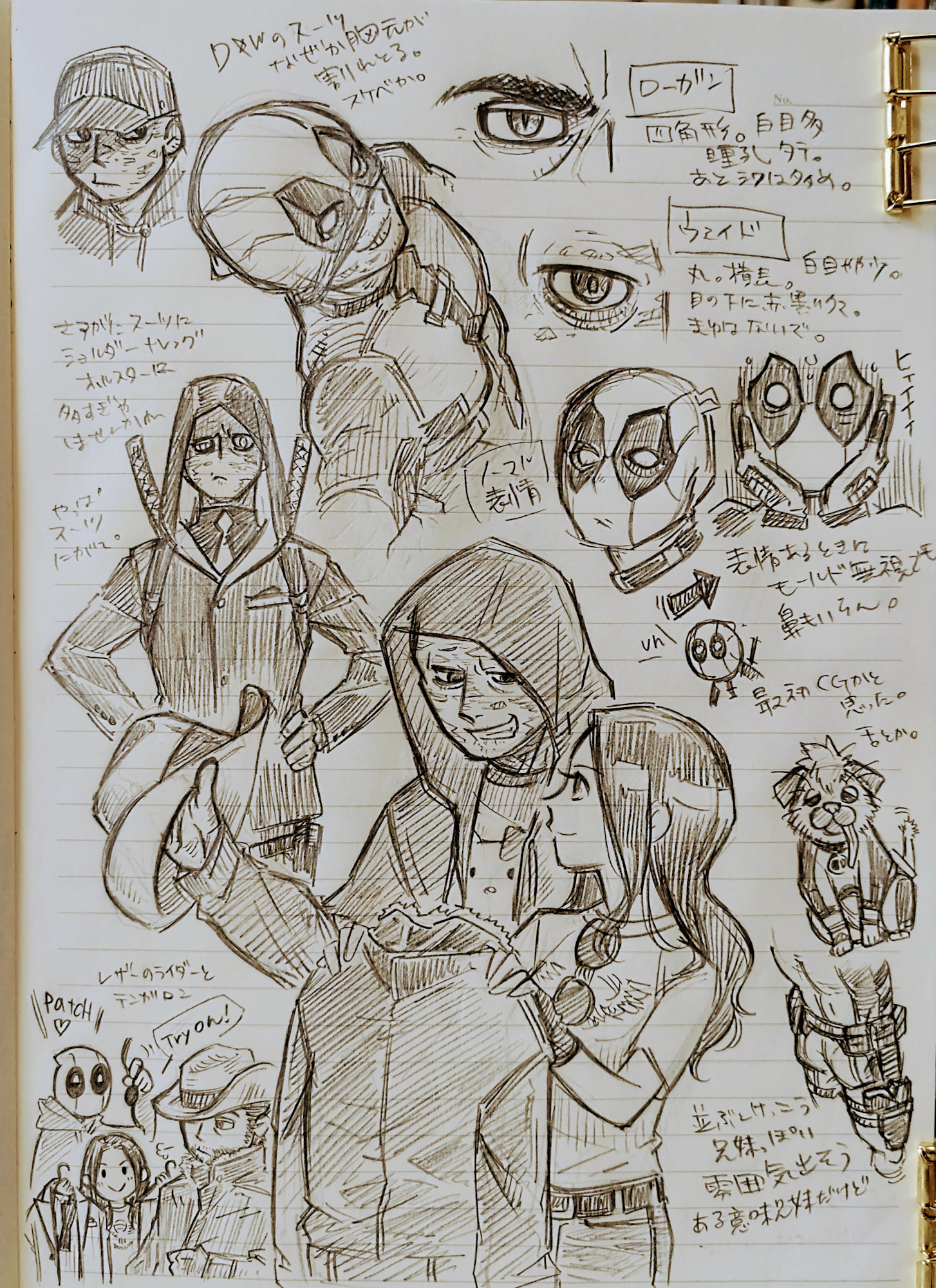 頭身上げた方の絵柄で描いてたリングノートがいっぱいになったから、別の罫線入りノートで。使わずに捨てるよりどうせなら落書きで潰したほうがいいもんね。まあいらない落書きの所は破る手間がかかるからどうなのよそれってなるけど(特にエロ・下ネタ・裸体デッサン系)