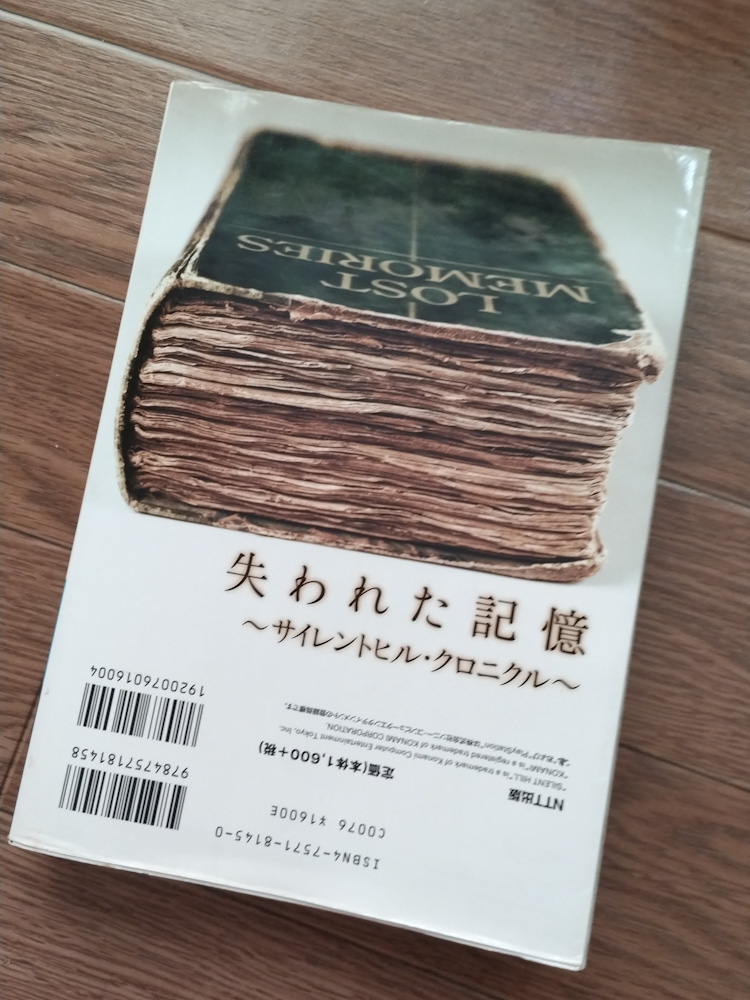 この緑色の本は2周目以降にゲーム内にも出てくるアイテム「失われた記憶」。3にも病院裏のボス戦手前で別のページが読める形で置いてあるやつね。
