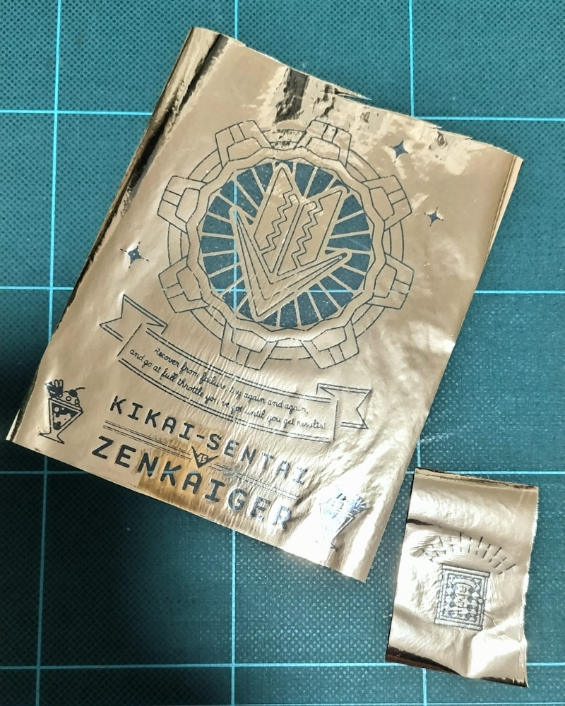 10枚ぐらいは箔も紙も無駄にしたぞ……というか、ネットの情報を集めてみると、レーザープリンターのインクと箔の相性と、各家庭のアイロンによって上手くいく行かないの差が大きいらしくて何度もテストしないと最的確が見つからないらしい。