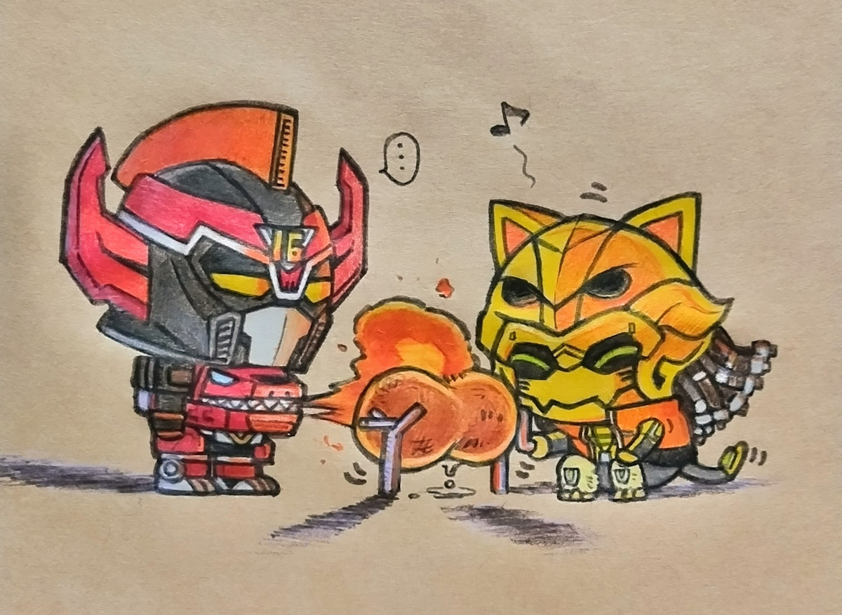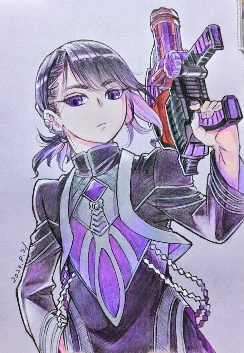 まあ背景は塗らなくても問答無用で紫になるから便利だし…あとギアトジンガーがね。B6程度の小さい紙面でそこそこ細かく描けたね〜エライエライ〜っていう心持ちで生きていく。