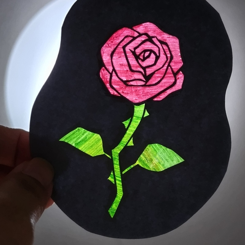ついでに、今日唐突に思い付いて2時間ぐらいで生まれて初めての切り絵をやったんですけど、裏に透け感ある色入れるんだったら、トレペに直着彩よりひょっとして色紙切り貼りしたほうが雰囲気良さげになるかもな…とか実験してて思った次第(色鉛筆→思ったより色出ない→めんどくせぇ水性マーカー→ここ)