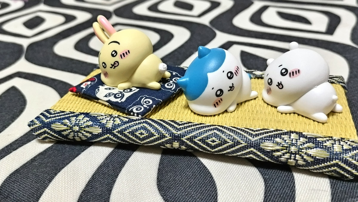 100均に売ってるちいかわフィギュアお手軽でいいよね。一緒に畳買って並べるだけでなかなかな味わいになる。