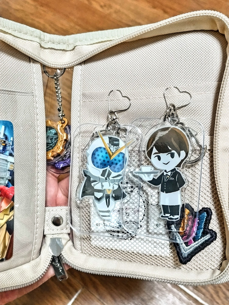 つーのも手持ちの数は全然ないけどセンタイギアのミニスイングとかマスター&ゼンブラの小さいアクキーとかを一括でまとめたかったからなんですが、このサイズだと案の定外への持ち運び前提みたいで収納性は低いんですよ。とにかく小さいものが多いから謎の深めのポケットとかいらねんだ。何この……隠しブロマイド入れ?