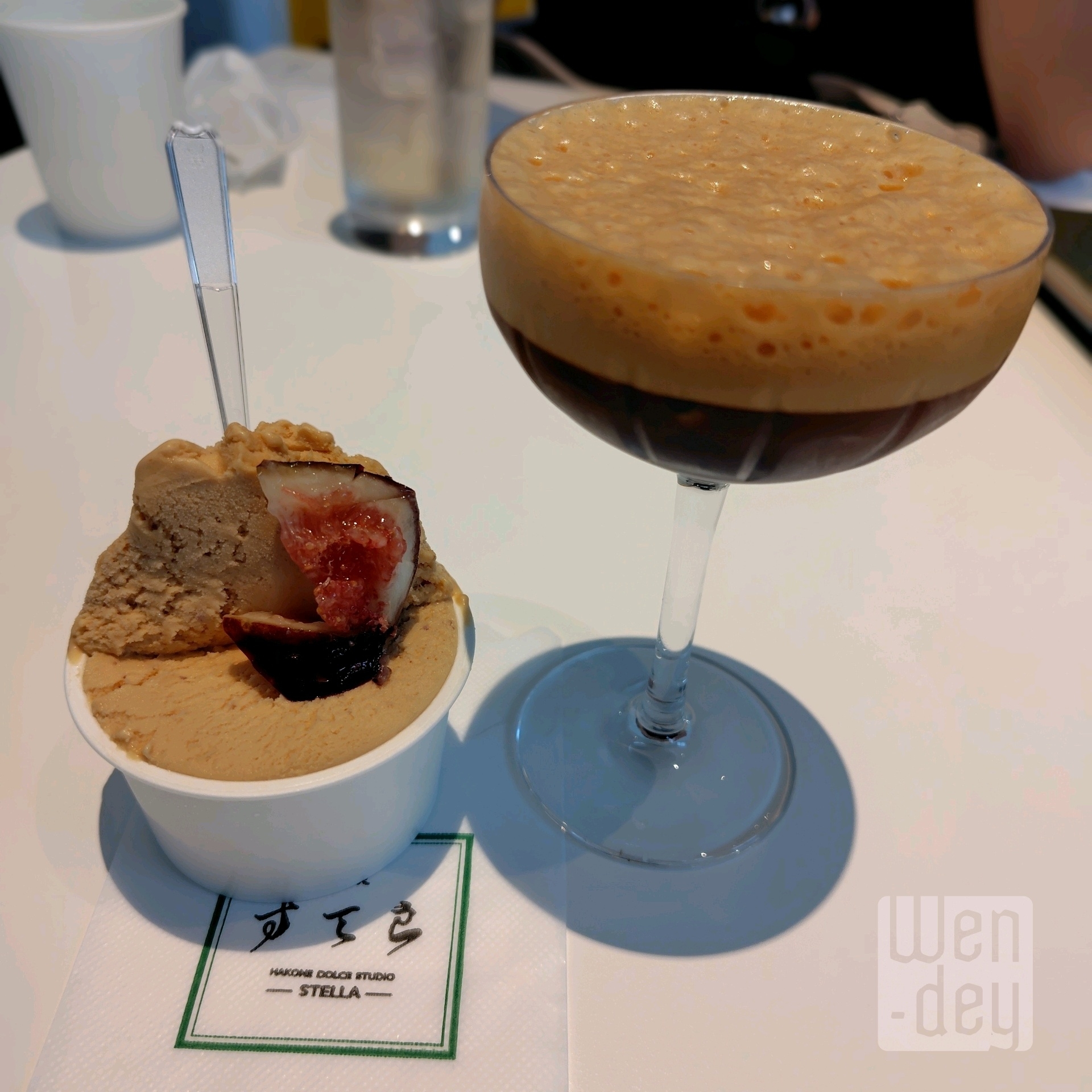 キャラメル無花果のジェラートとカフェ・シェケラート。