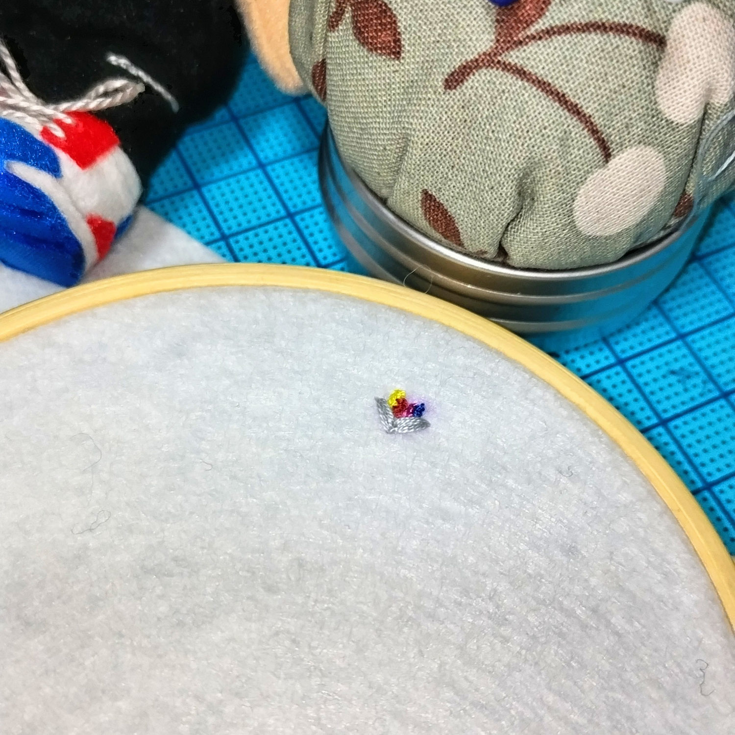爪より小さいモチーフの刺繍なんて刺繍糸じゃ無理なので細目の縫い糸でやった。