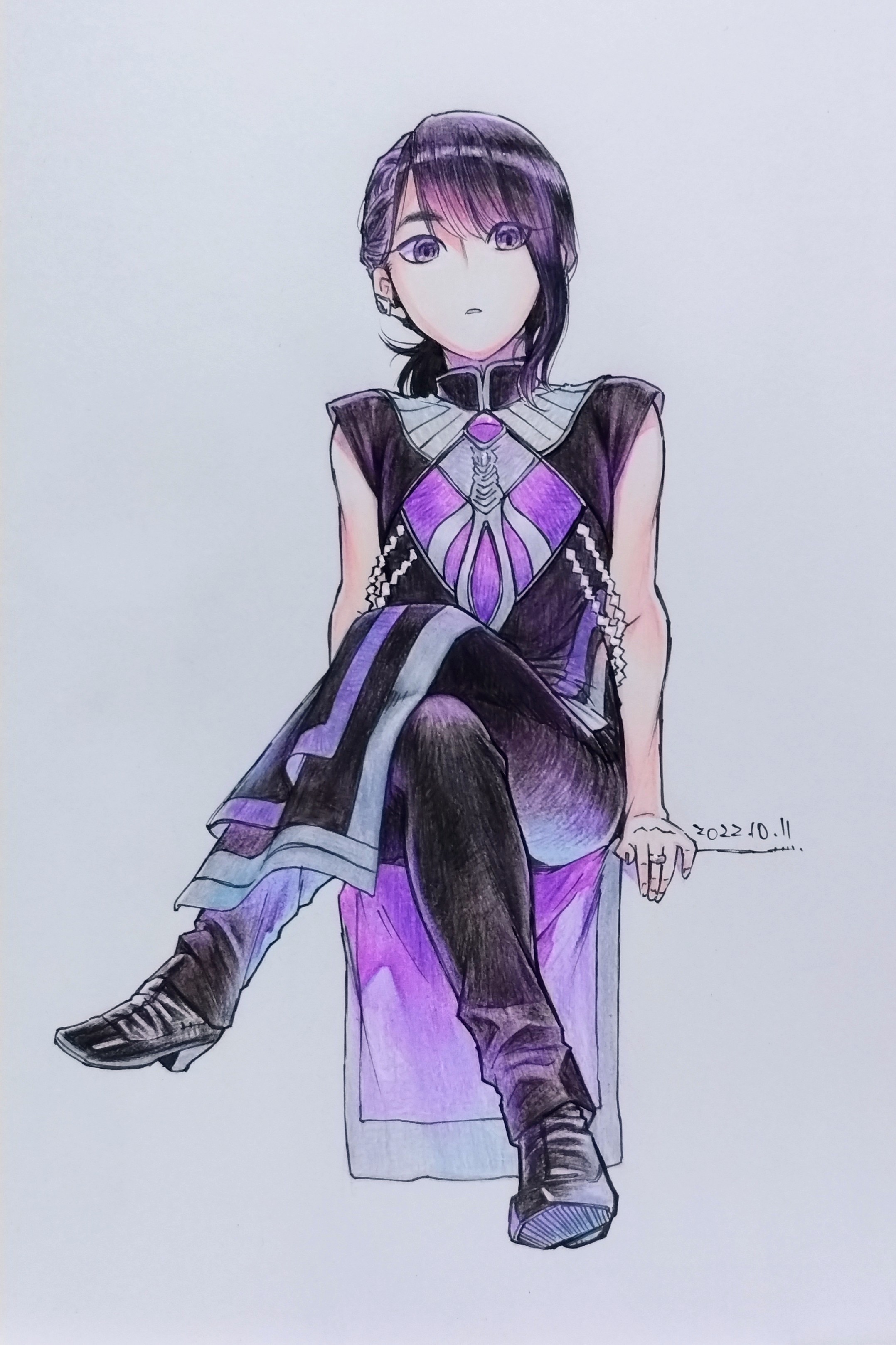 足組み久しぶりに描いたのでふくらはぎとスネ周りに苦戦が見て取れる。長さが迷子。ダボ服でない限りは布の厚みを考慮して描かないほうがそれっぽくなる。