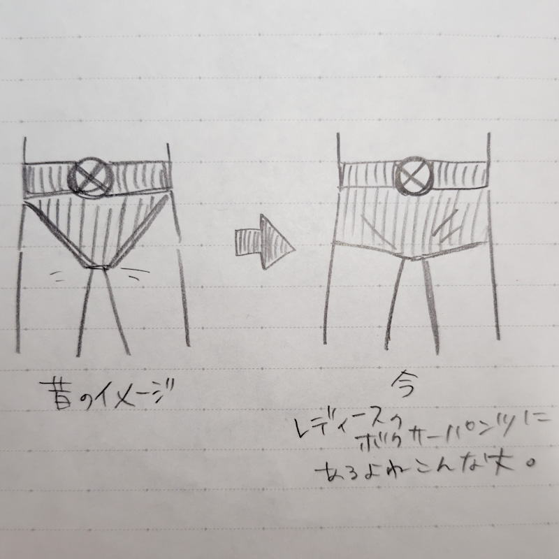 昔の作品は割と食い込み深い気がしたんだが、最近の作品になるにつれ、一分丈のボクサーパンツみたいになってねえか…?