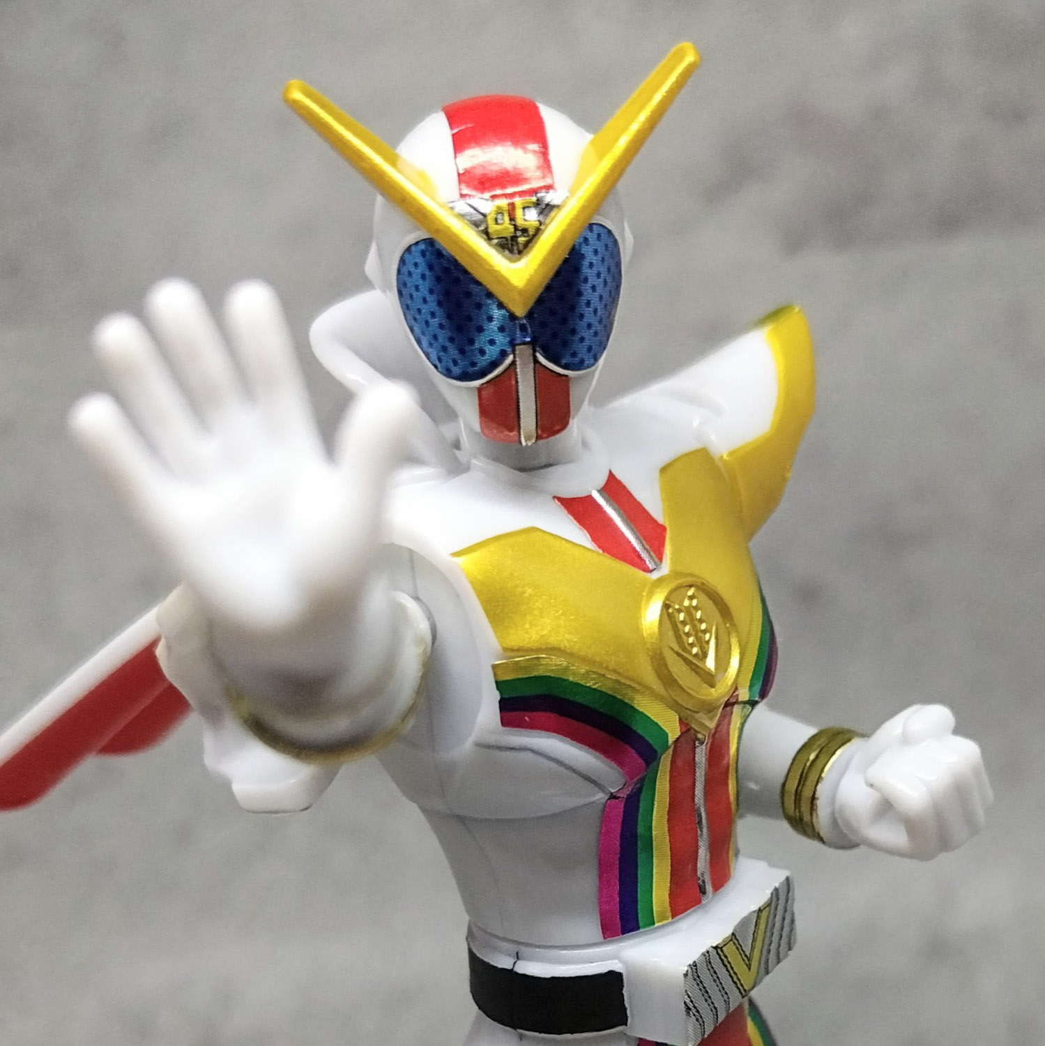 名乗り後のグー突き出しポーズも取れなくないけど、カメラの性能の限界と勇動の関節周りの限界が合わさってちょっと写真映えが悪いからムリ。