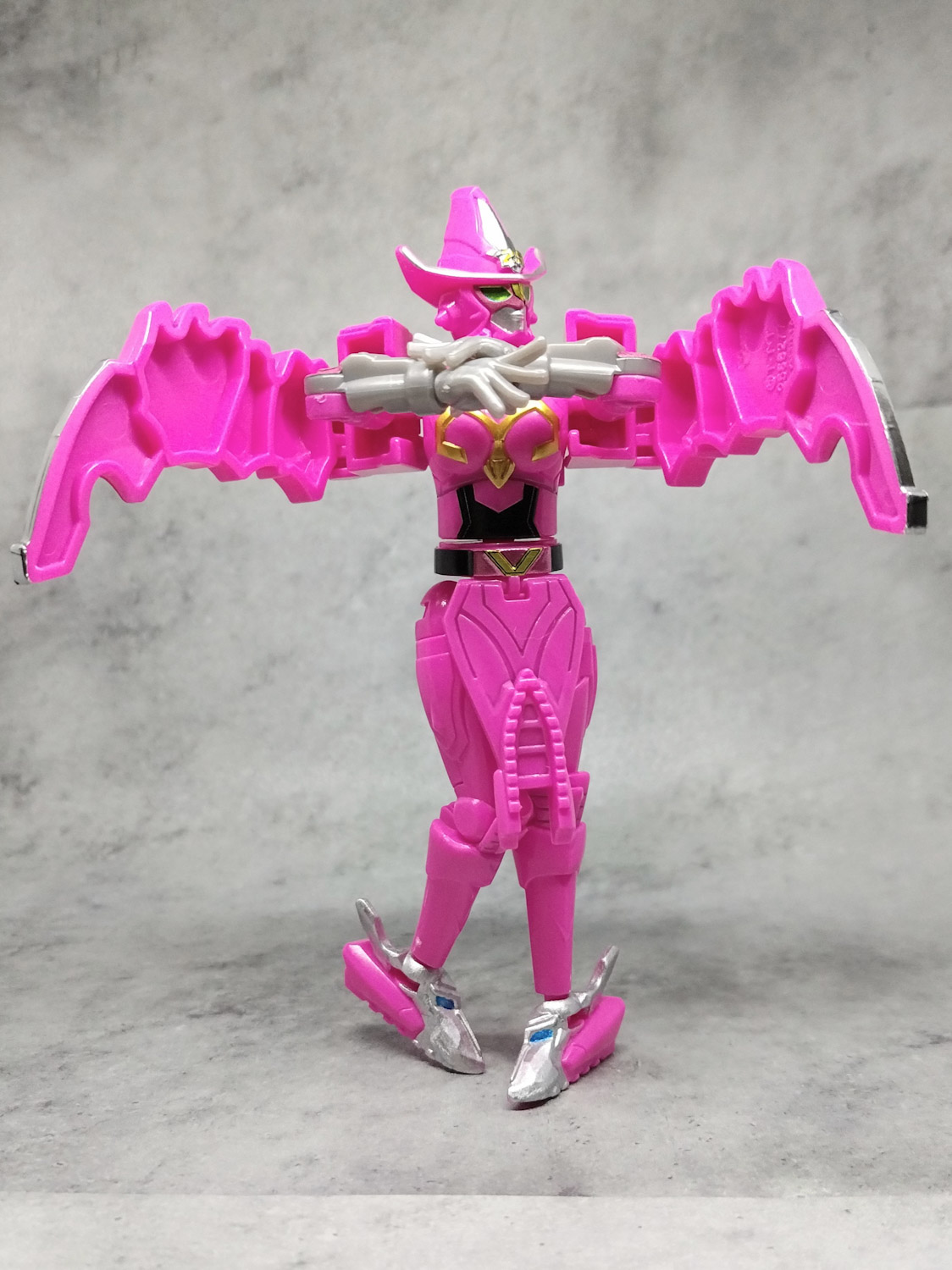 まあ戦隊で色付きバイザーな方が珍しいんだけど。一応ルパンレンジャーの帽子型バイザー(アレで視界確保できる仕組みらしい)が直近で、もう一丁下がるとゴーバスかなぁ。